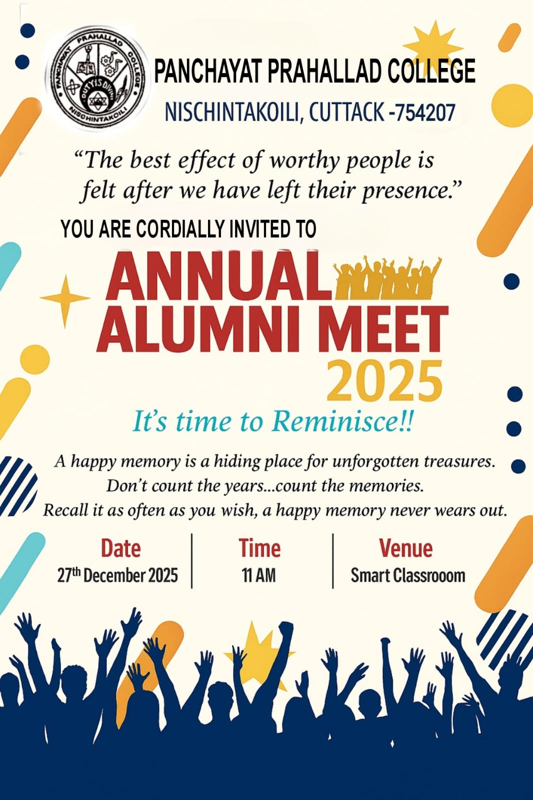 This college named as Panchayat Prahallad College made a modest beginning in 1979, located in a rural area. It serves the purpose of educating the poor and needy students of the locality. The college provides qualitative education in Arts and Science and tries to have its own identity in the sphere of higher education in the state. With the active co-operation of local dignitaries and perseverance of college staff the college carves out a special image in the map of higher education in the state.